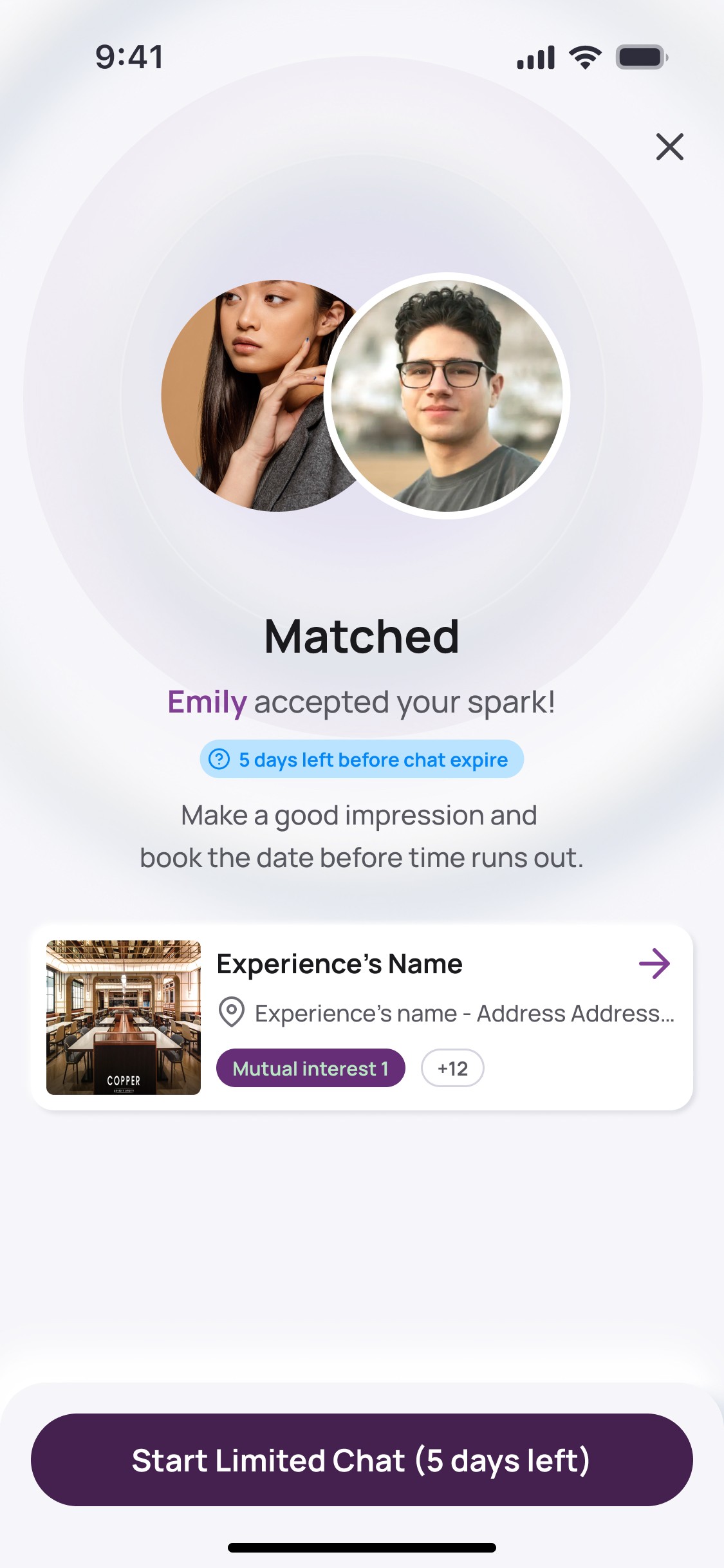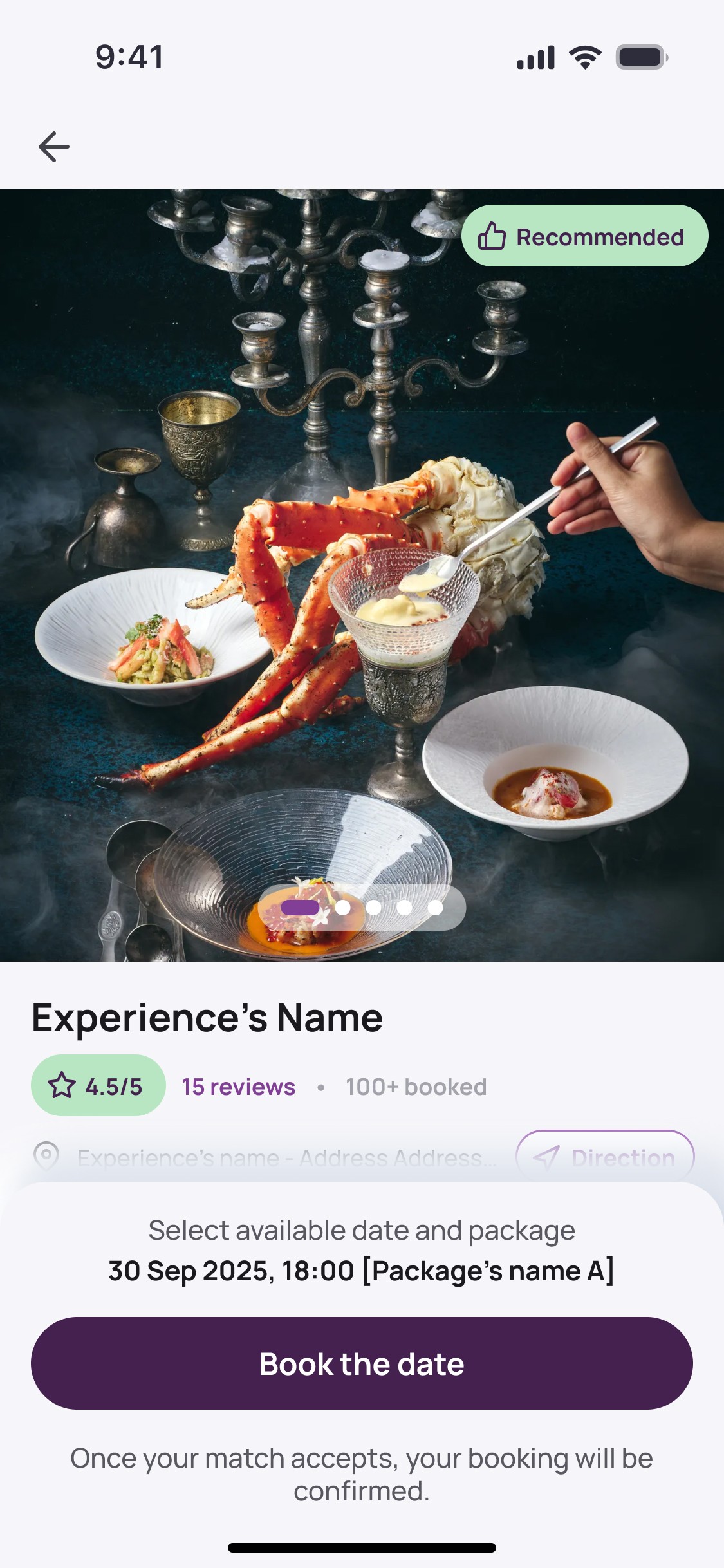 Ready to meet? Book the experience you both chose, right from the app, with just a few taps.