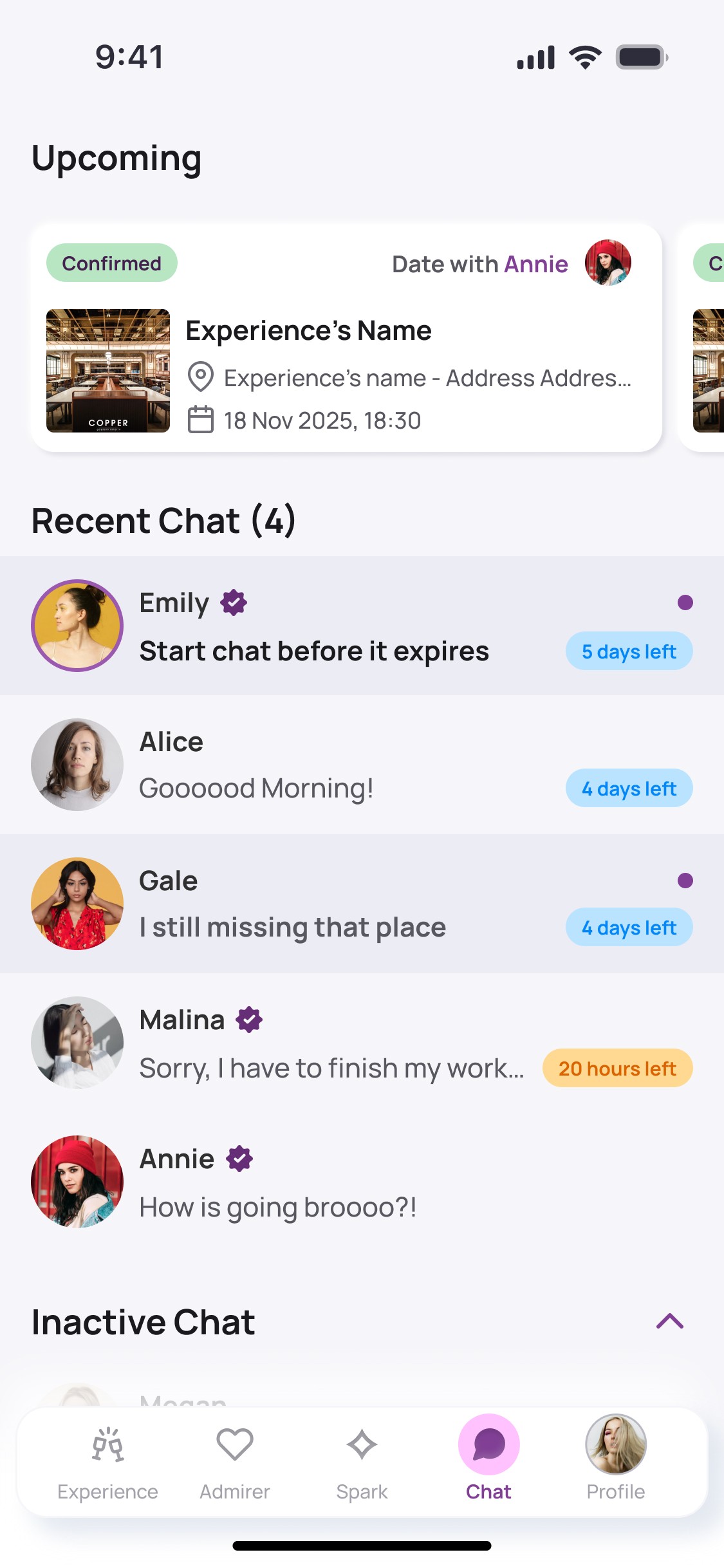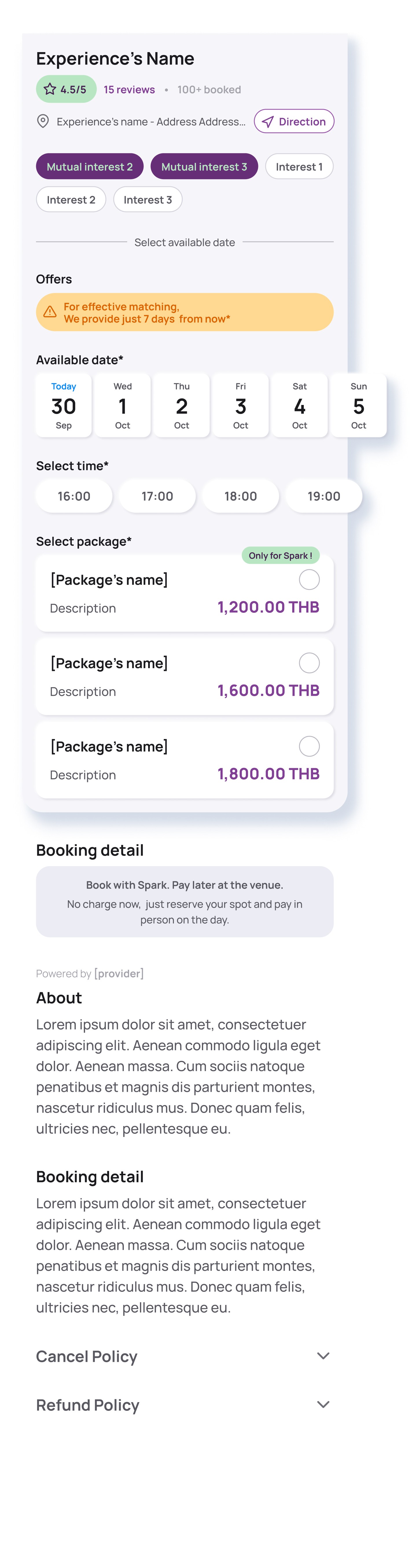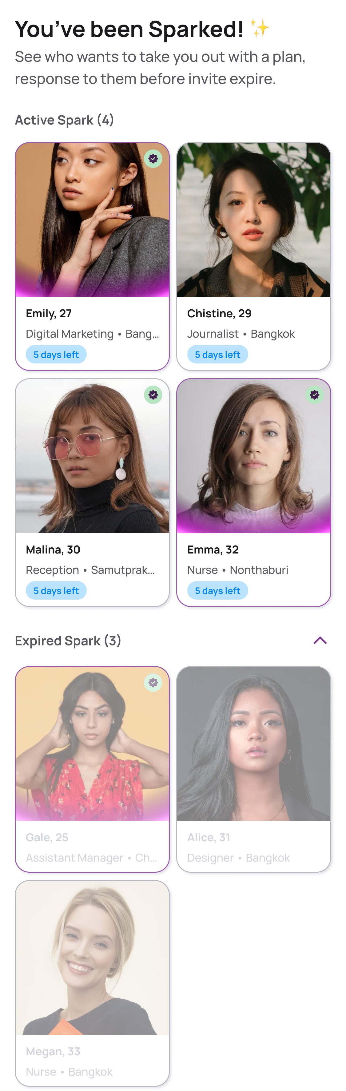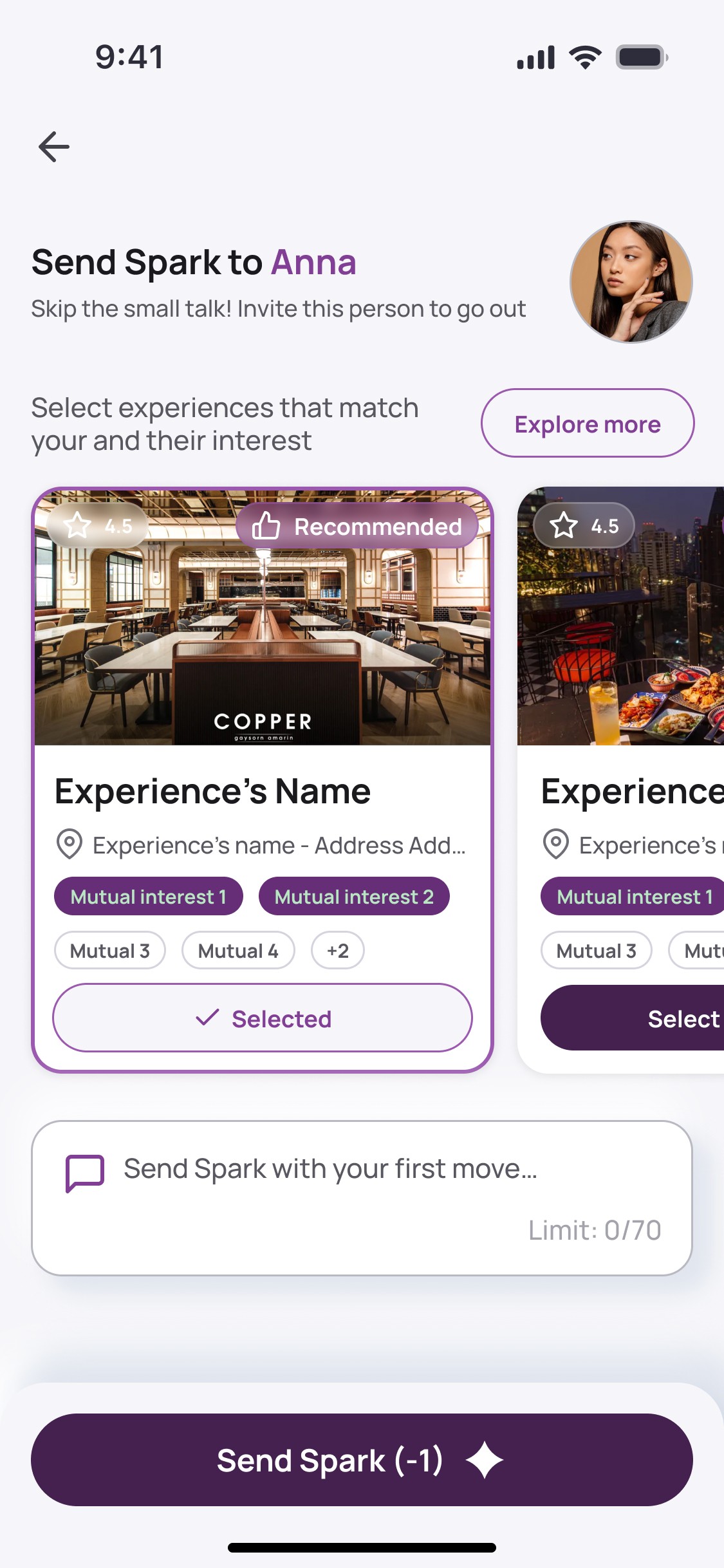 SPARK lets you book shared experiences with your matches so real connection happens faster. No endless chatting. No guessing. Just real moments.